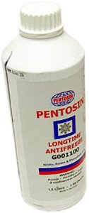 Formulated especially for aluminum engines, without nitrite, amine and phosphorous containing additives. Blue/Green in color. Beside its basic feature as a superior antifreeze for water-cooled engines it shows a very low evaporation loss. Pentosin Long-time Antifreeze does not affect sealings and features a good corrosion protection for all material used in cooler devices and non ferrous metals.Warning: Do not mix different coolants.